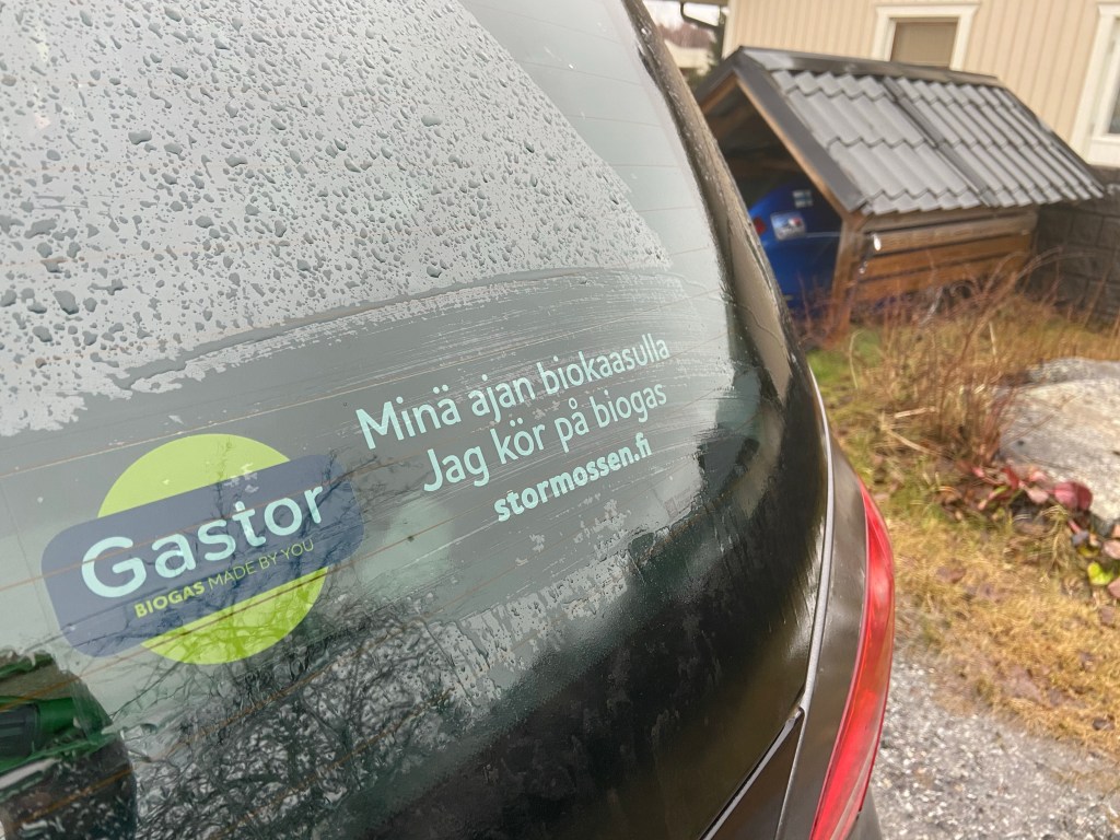 Nu skall jag presentera min bil, som jag inte använder så ofta. Min bil går på biogas och därför känns det bra de få gångerna jag använder den. Jag köpte den lindrigt begagnad. Ganska snart efter inköpet konverterade jag bilen till gasdrift. Det går att göra på bensinbilar och kostar ca 3000€. Man får ett bidrag från staten på 1000€ för konverteringen så nettokostnaden är ca 2000€. Varför skall man då köra gasbil? Här i Vasa trakten har vi tillgång till biogas och den gasen produceras lokalt. Gasen görs av vårt avfall, alltså skit och matrester. Om det inte skulle göras metangas av detta skulle metanet på naturlig väg ha landat i vår atmosfär. Då är det ju mycket bättre att man kan driva motorer med metangasen. Det är precis som att man skulle använda råvaran två gånger istället för en gång. Gasen är ju också billigare än bensin så både naturen och jag förtjänar på affären.